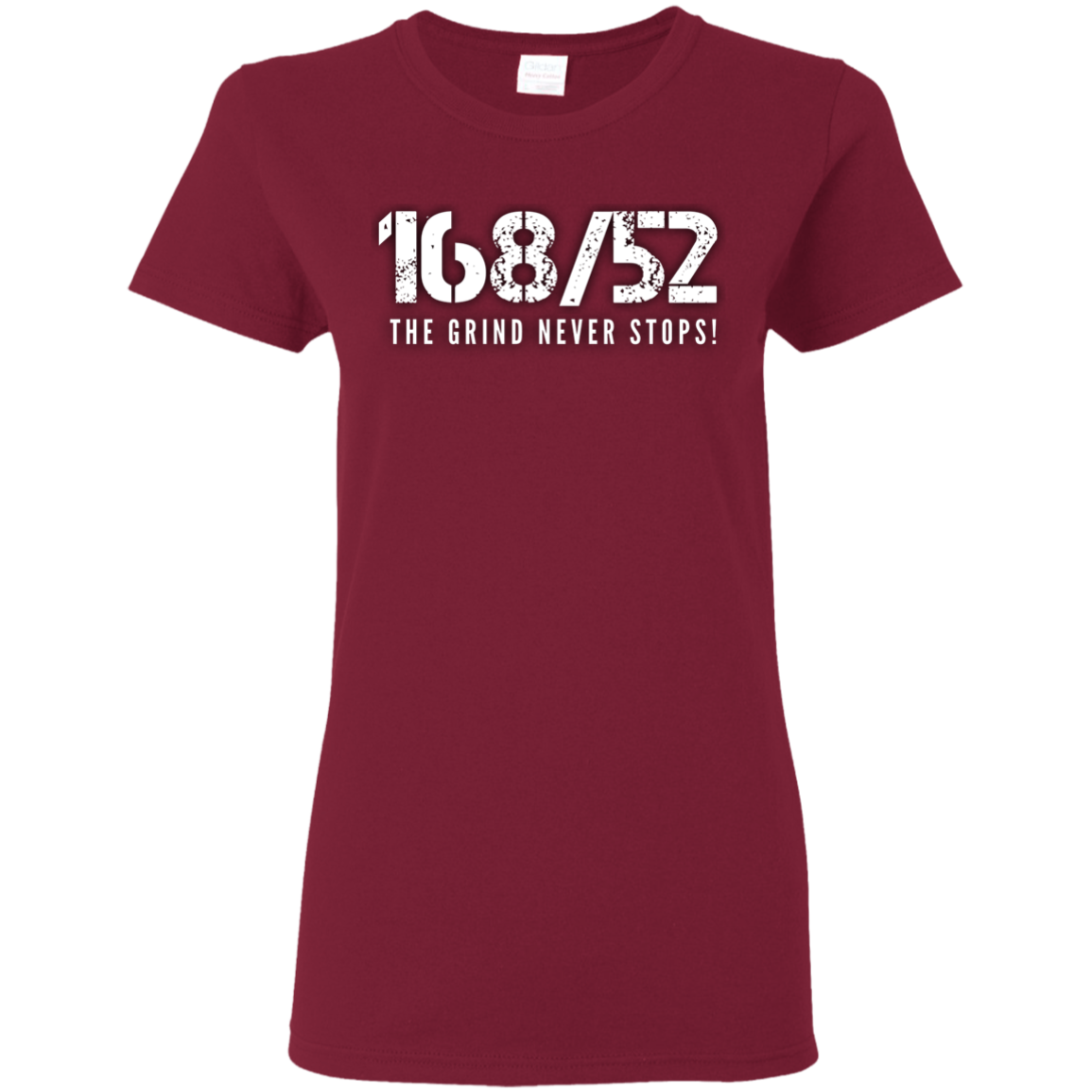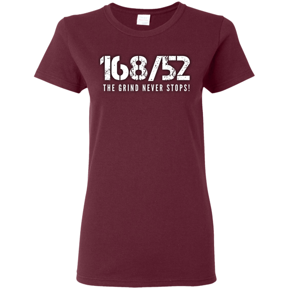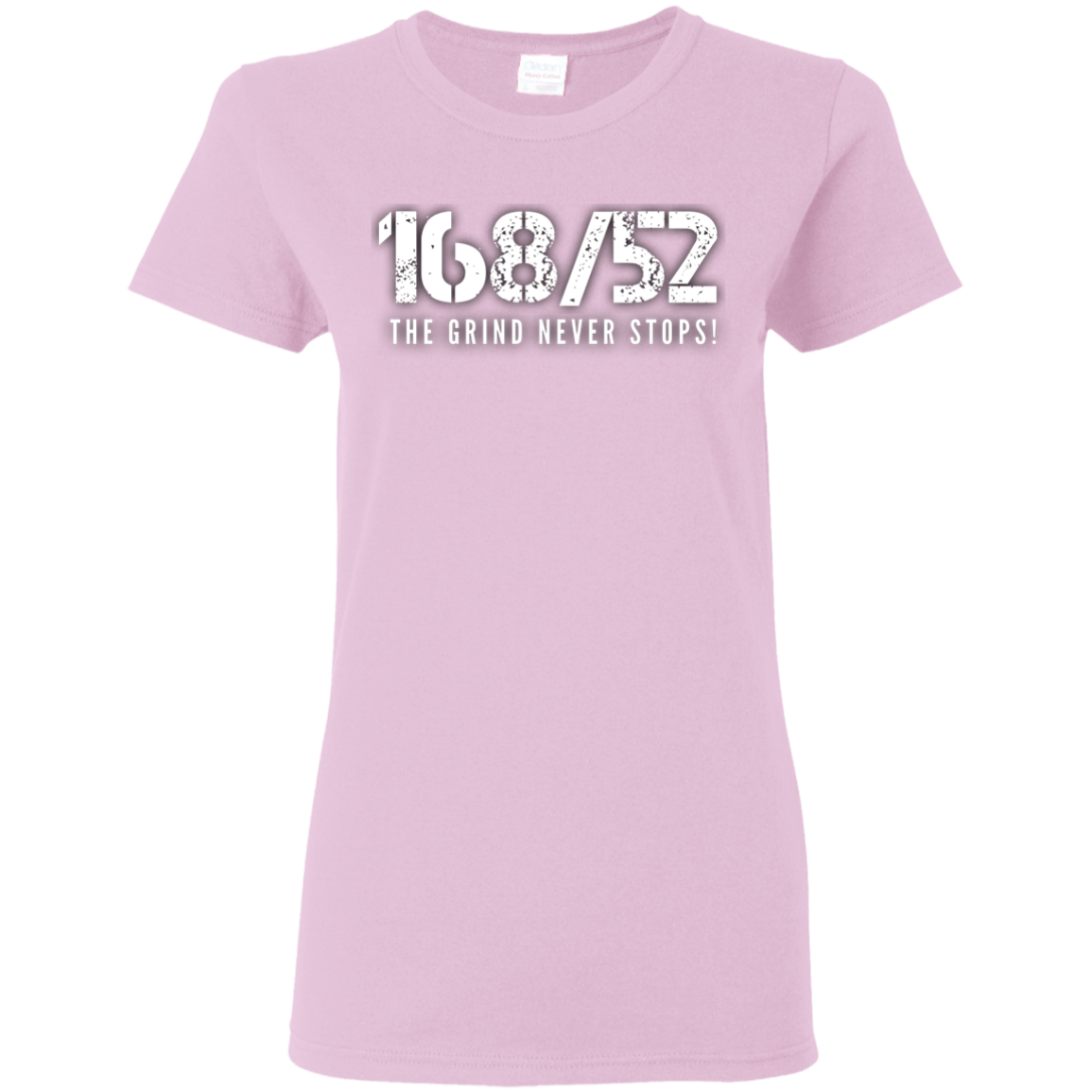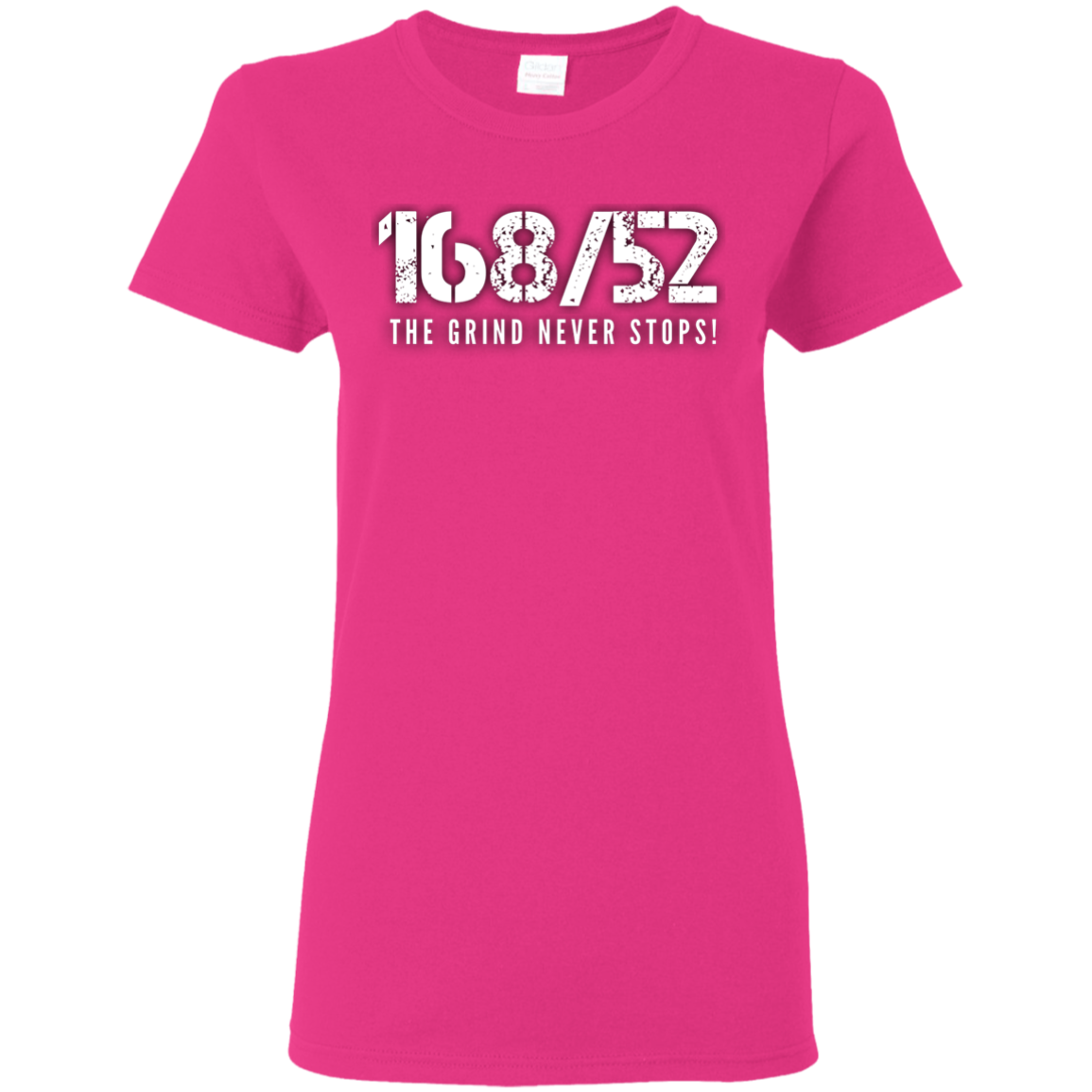 168/52 THE GRIND NEVER STOPS! White print Ladies T-Shirt